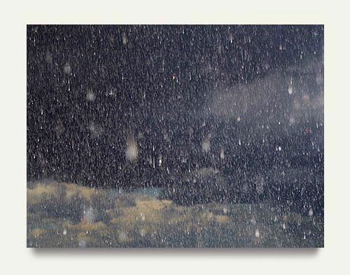 Weather is something that throughout the ages, humans have wished to influence and control. In 2003 there was a record drought in normally overcast Germany where I stay, and it was then that I began to document every nighttime rainfall possible with an elaborate technique, which includes 8x10” film and up to 20,000 watts of flash. This is because my subject matter is essentially transparent and wants to stay that way.“